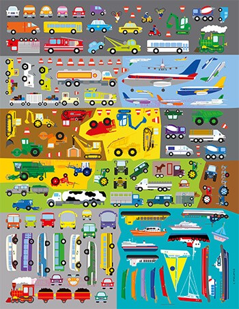 ทำความรู้จักกับยานพาหนะ จากสถานีรถไปอันแสนวุ่นวาย ไปสู่การซ้อมแล่นเรือใบ พร้อมเหินฟ้าไปกับบอลลูน แล้วกลับมาชมการแข่งขันรถมอเตอร์ไซค์ เติมเต็มจินตนาการไปกับการเลือกสรรสติกเกอร์ยานพาหนะหลากหลายชนิด มาติดลงบนฉากให้สมบูรณ์และสวยงาม ได้เวลามาสร้างสรรค์เรื่องราวสุดสนุกไปด้วยกันแล้ว