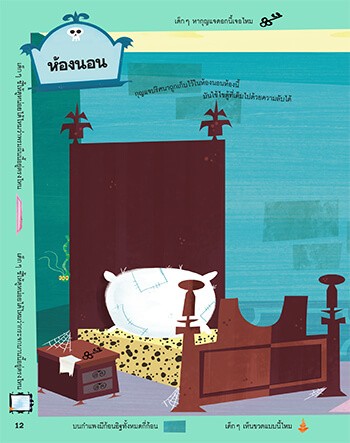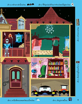 เด็กๆ จะได้สัมผัสกับช่วงเวลาอันแสนสนุกกับการเนรมิตฉากบ้านผีสิงอันสุดสยองขวัญ ด้วยการติดสติกเกอร์กว่า 250 ชิ้น พร้อมสำรวจห้องต่างๆ ในบ้านผีสิงเพื่อพิสูจน์ความน่ากลัวอีกทั้งเด็กๆ จะได้ร่วมเล่นเกมสุดท้าทาย ซึ่งอยู่ที่ขอบหนังสือในแต่ละหน้า และเกมล่าสมบัติเพื่อหาสิ่งที่ซ่อนอยู่ในแต่ละฉากให้เจอ