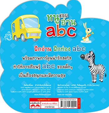 ฝึกอ่าน ฝึกท่อง abc พร้อมภาพการ์ตูนน่ารักสดใส ทำให้การเรียนรู้ abc ของเด็กๆเป็นเรื่องสนุกและมีความสุข ฝึกอ่าน ฝึกท่องได้คล่องแคล่วหนังสือเล่มแรกๆ ของเด็กถือเป็นจุดเริ่มต้นที่ช่วยกระตุ้น พัฒนาการทางสติปัญญาและทางจิตใจให้กับเด็กดังนั้นจึงควรเลือกหนังสือให้เหมาะสมกับวัยและการเรียนรู้ แล้วทำให้หนังสือเป็นส่วนหนึ่งในกิจวัตรประจำวัน โดยอาจสร้างมุมหนึ่งของบ้านให้เป็นมุมหนังสือสำหรับเด็กๆ ซึ่งนอกจากจะเป็นการพาหนังสือให้ใกล้ชิดกับเด็กแล้ว ยังเป็นเสมือนสัญญาณเตือนให้เด็กหยิบหนังสือมาเรียนรู้ในทุกๆ วันอีกด้วย"หนูชอบอ่าน abc" จะทำให้เด็กๆ รู้จักกับตัวอักษรภาษาอังกฤษ a-zควบคู่กับคำศัพท์ภาษาอังกฤษที่ขึ้นต้นด้วยตัวอักษรนั้นๆ ผ่านภาพประกอบสีสันสดใส เพื่อให้สามารถจดจำตัวอักษรภาษาอังกฤษ พร้อมทั้งเชื่อมโยงภาพกับคำศัพท์แต่ละตัวได้อย่างถูกต้องอีกด้วย
