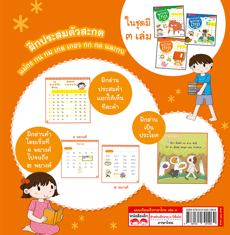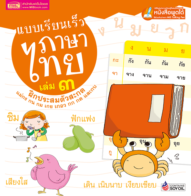 "แบบเรียนเร็วภาษาไทย เล่ม 3 ฝึกประสมตัวสะกด" เหมาะสำหรับน้องๆ ปฐมวัยที่เริ่มฝึกอ่านภาษาไทย รวมถึงน้องๆ วัยอนุบาล จนถึงชั้นประถมศึกษาศึกษาตอนต้น โดยมีเนื้อหาเกี่ยวกับการประสมคำแบบมีตัวสะกด คือ ตัวสะกดในแม่กง กน กม เกย เกอว กก กด และ กบ ซึ่งจะมีการฝึกอ่านคำและประโยค ทั้งยังมีภาพประกอบเพื่อให้น้องๆ ได้เรียนรู้สิ่งที่อยู่รอบตัวไปพร้อมๆ กับการพิจารณาความหมายของคำที่ประสมแบบมีตัวสะกด ทำให้การอ่านภาษาไทยแตกฉาน และเป็นการปูพื้นฐานภาษาไทยที่ดีต่อไปในอนาคต!