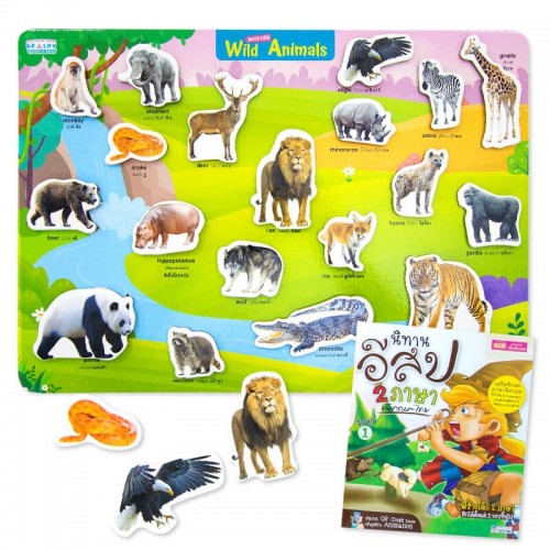 หนังสือนิทานอีสป 2 ภาษา ชุดที่ 1 พร้อม Pull & Stick : Wild Animals ภาพจริง